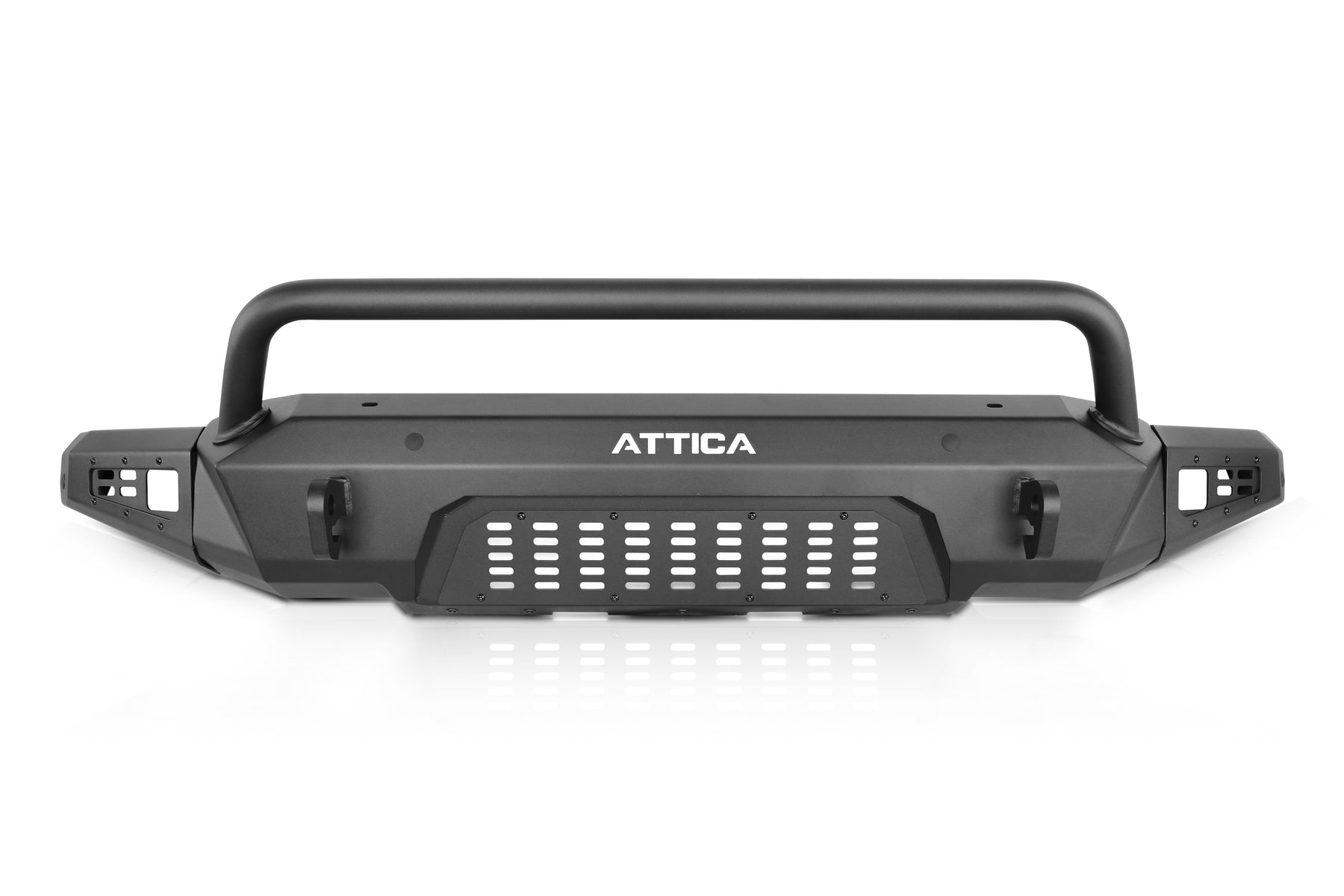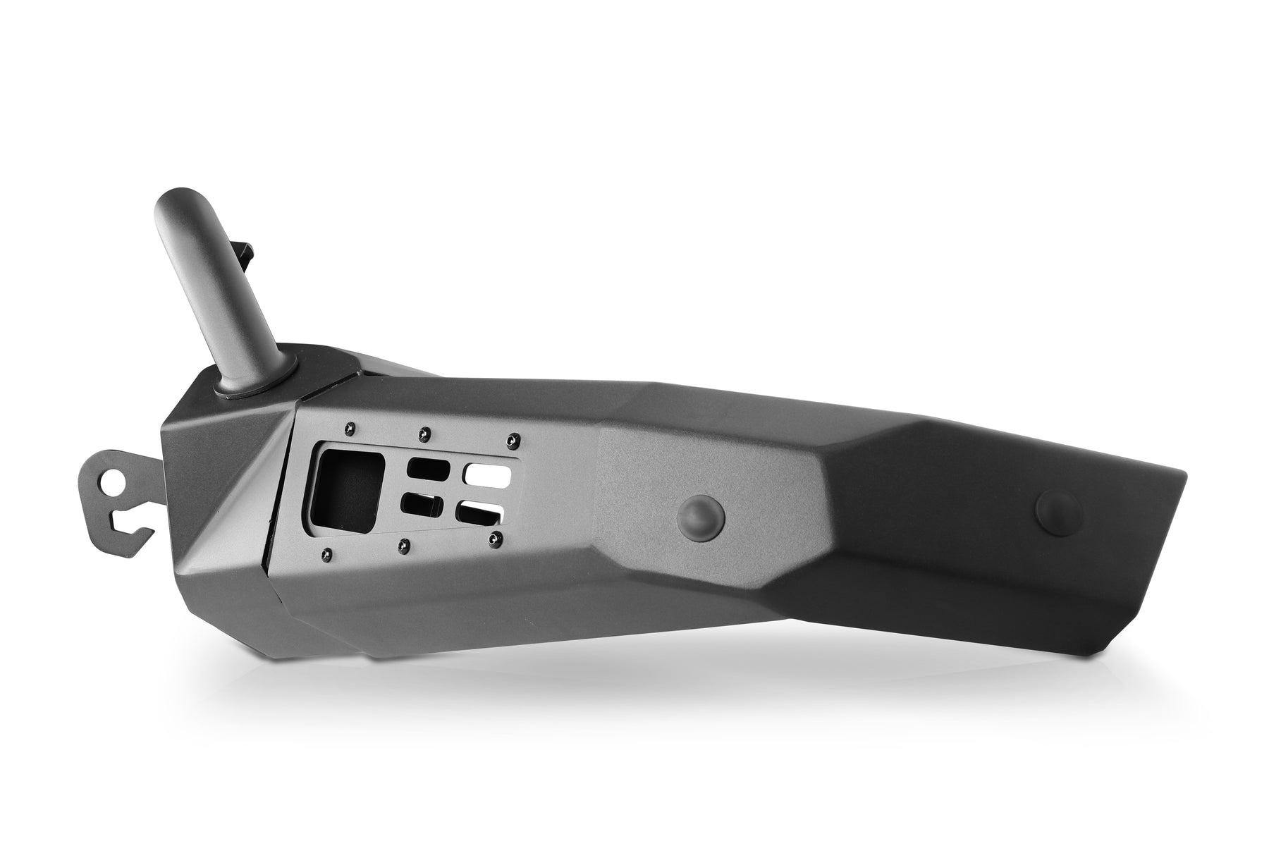 The welded D-ring tabs provide secure attachment points for recovery straps and shackles, while the optional light hoop transforms visibility with space for a 30-inch LED light bar plus cube lights. The modular lighting approach means you can configure illumination to match your specific needs without compromising the bumper's clean lines or functionality.