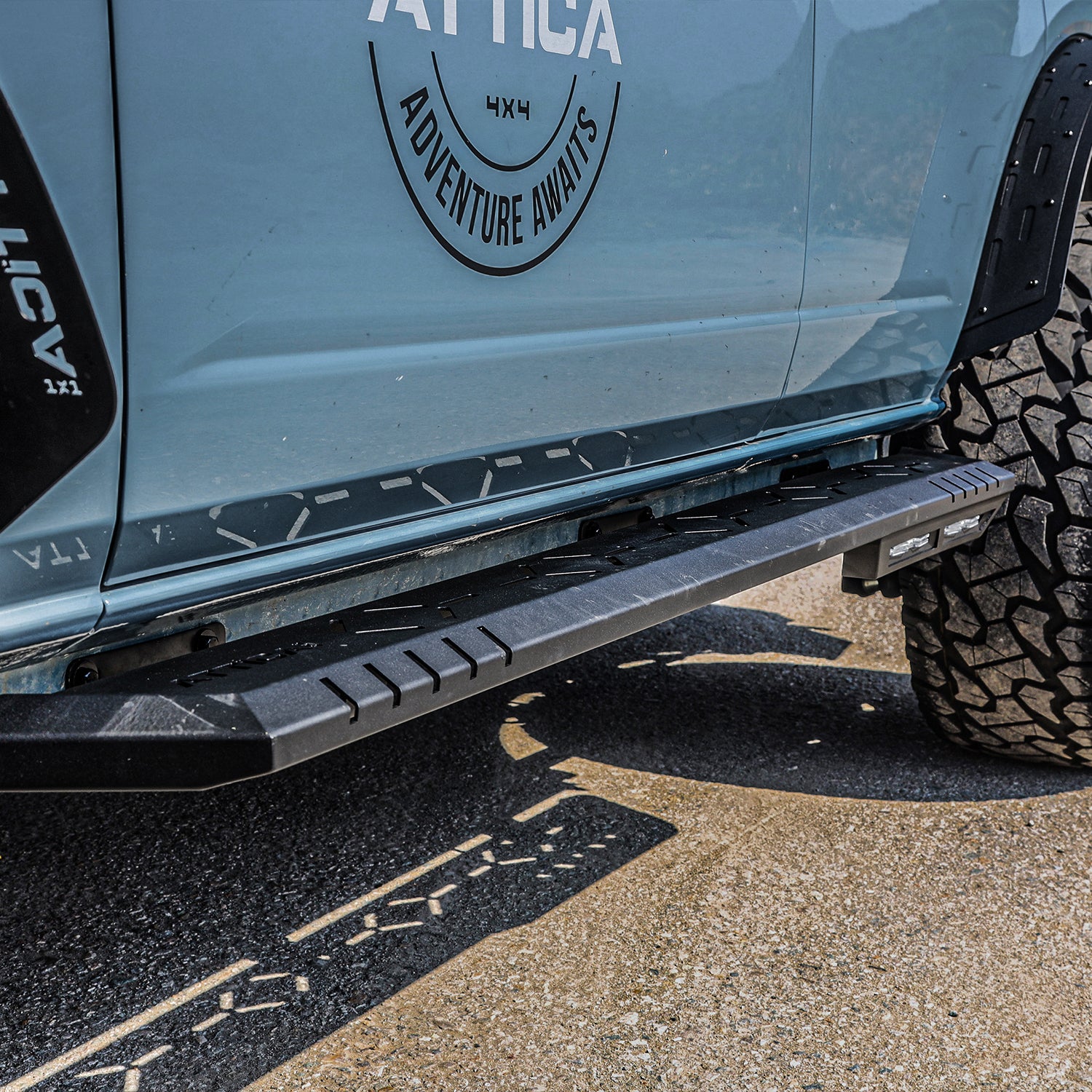 Laser-cut and optimized Attica 4x4 branding.